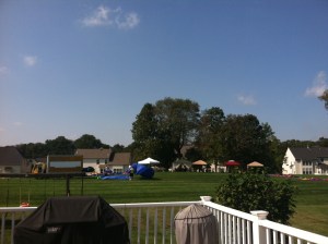 Com muitos brinquedos para as crianças e uma tenda com comidas, as pessoas trazem suas cadeiras para sentarem. Se fosse no Brasil, seria o equivalente a cadeira de praia, mas aqui, elas são usadas para esses eventos outdoor e assistir os treinos de “soccer” dos filhos. Todo mundo tem a sua. Inclusive nós.